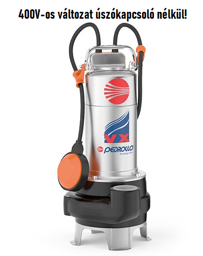 Pedrollo VX 15/35 nyitott, rozsdamentes járókerékkel szerelt szennyvíz szivattyú fekáliás és szennyezett vizek szivattyúzásához 500 literig.